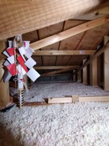 屋根裏の断熱材を吹き込んだ際に、上棟の時にお祈りした幣束が飾ってあるのが見えました!